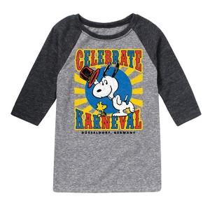 Peanuts - Snoopy Celebrate Karneval - Toddler & Youth Raglan Graphic T-Shirt - From the best-loved comic strip in history comes officially licensed PEANUTS apparel for fans everywhere. Show your love for Charlie Brown, Snoopy, Woodstock, Lucy, Linus, Pigpen and the whole gang. Copyright Peanuts.