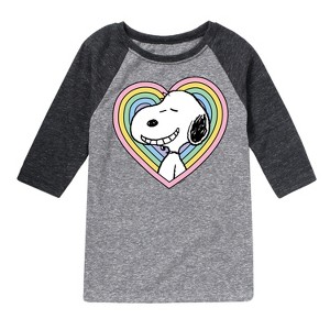 Peanuts - Snoopy Heart - Youth Raglan Tee - From the best-loved comic strip in history comes officially licensed PEANUTS apparel for fans everywhere. Show your love for Charlie Brown, Snoopy, Woodstock, Lucy, Linus, Pigpen and the whole gang. Copyright Peanuts.