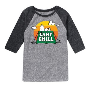 Peanuts - Camp Chill - Toddler And Youth Raglan Graphic T-Shirt - From the best-loved comic strip in history comes officially licensed PEANUTS apparel for fans everywhere. Show your love for Charlie Brown, Snoopy, Woodstock, Lucy, Linus, Pigpen and the whole gang. Copyright Peanuts.