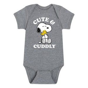 Peanuts - Cute And Cuddly - Infant Baby One Piece Onesie - From the best-loved comic strip in history comes officially licensed PEANUTS apparel for fans everywhere. Show your love for Charlie Brown, Snoopy, Woodstock, Lucy, Linus, Pigpen and the whole gang. Copyright Peanuts.