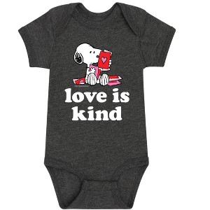 Peanuts - Love Is Kind - Infant One Piece - From the best-loved comic strip in history comes officially licensed PEANUTS apparel for fans everywhere. Show your love for Charlie Brown, Snoopy, Woodstock, Lucy, Linus, Pigpen and the whole gang. Copyright Peanuts.