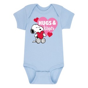 Peanuts - Snoopy Hugs And Kisses - Infant Baby One Piece Onesie - From the best-loved comic strip in history comes officially licensed PEANUTS apparel for fans everywhere. Show your love for Charlie Brown, Snoopy, Woodstock, Lucy, Linus, Pigpen and the whole gang. Copyright Peanuts.