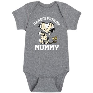 Peanuts - Hanging With My Mummy - Infant Baby One Piece - From the best-loved comic strip in history comes officially licensed PEANUTS apparel for fans everywhere. Show your love for Charlie Brown, Snoopy, Woodstock, Lucy, Linus, Pigpen and the whole gang. Copyright Peanuts.