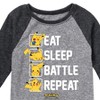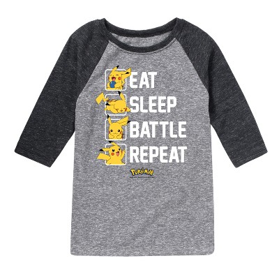Pokémon - Eat Sleep Battle Repeat - Youth Raglan Graphic T- Shirt - Celebrate the essence of Pokemon's Pokémon with officially licensed apparel featuring unique designs crafted exclusively by Hybrid Apparel. Each piece brings beloved characters, iconic imagery, and memorable moments to life, offering Pokémon fans a one-of-a-kind way to showcase their passion.
