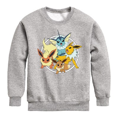 Pokémon - Eevee Evolution Stickers - Youth Crewneck Fleece Sweatshirt - Celebrate the essence of Pokemon's Pokémon with officially licensed apparel featuring unique designs crafted exclusively by Hybrid Apparel. Each piece brings beloved characters, iconic imagery, and memorable moments to life, offering Pokémon fans a one-of-a-kind way to showcase their passion.