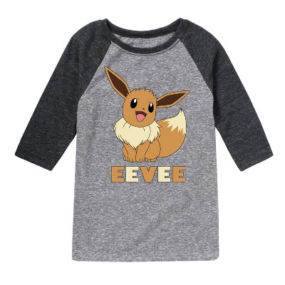 Pokémon - Happy Eevee - Youth Raglan Graphic T- Shirt - Celebrate the essence of Pokemon's Pokémon with officially licensed apparel featuring unique designs crafted exclusively by Hybrid Apparel. Each piece brings beloved characters, iconic imagery, and memorable moments to life, offering Pokémon fans a one-of-a-kind way to showcase their passion.