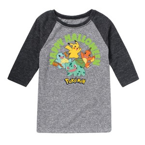 Pokémon - Happy Halloween - Youth Raglan Graphic T-Shirt - Celebrate the essence of Pokemon's Pokémon with officially licensed apparel featuring unique designs crafted exclusively by Hybrid Apparel. Each piece brings beloved characters, iconic imagery, and memorable moments to life, offering Pokémon fans a one-of-a-kind way to showcase their passion.