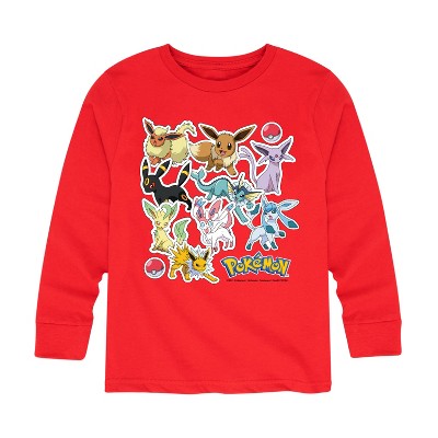 Boys' - Pokémon - Pikachu Eevee Friends Retro Stripe Long Sleeve Graphic T-Shirt