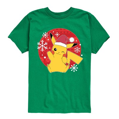 Pokémon - Pikachu Seasons Greetings - Youth Short Sleeve Graphic T-Shirt - Celebrate the essence of Pokemon's Pokémon with officially licensed apparel featuring unique designs crafted exclusively by Hybrid Apparel. Each piece brings beloved characters, iconic imagery, and memorable moments to life, offering Pokémon fans a one-of-a-kind way to showcase their passion.