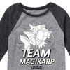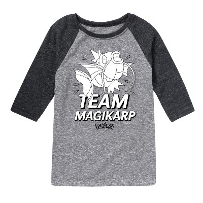 Pokémon - Team Magikarp - Youth Raglan Graphic T- Shirt - Celebrate the essence of Pokemon's Pokémon with officially licensed apparel featuring unique designs crafted exclusively by Hybrid Apparel. Each piece brings beloved characters, iconic imagery, and memorable moments to life, offering Pokémon fans a one-of-a-kind way to showcase their passion.