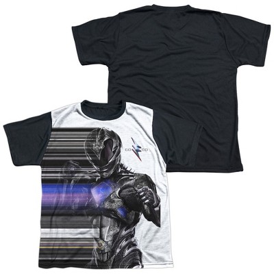 Boys' Power Rangers Blue Streak Short Sleeve Costume T-Shirt, White Front, Black Back, Medium