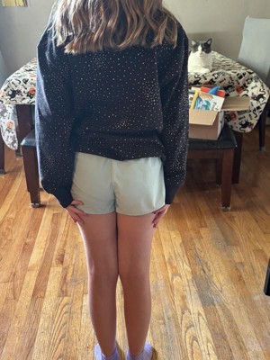 My 10 year old daughter is wearing size 10/12 and it fits her perfectly. It is labeled as ‘’boys,’’ but is very much unisex. The sweatshirt is perfect for the style nowadays. Oversized fit. Nice color of black with silver thrown in there. The ribbed material gives it a nice look. It appears that it will hold up well over time.