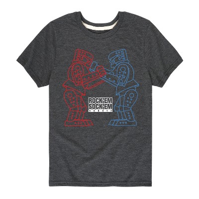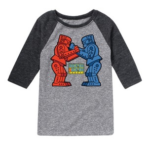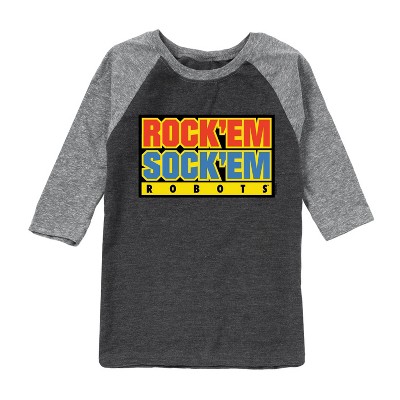 Rock 'Em Sock 'Em - Rock 'Em Robot - Toddler And Youth Raglan Graphic T-Shirt - Punch up your style with Rock 'Em Sock 'Em graphic apparel starring the Red Rocker and Blue Bomber. These vintage fight-night designs celebrate the classic clash of plastic titans.