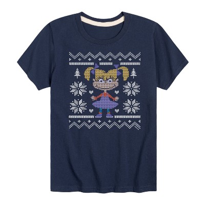 Boys' Rugrats Angelica Ugly Christmas Sweater Long Sleeve Graphic T-Shirt - Angelica Ugly Sweater - Navy - Medium