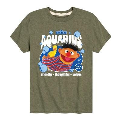 Boys' Sesame Street Bert Ernie Best Pals Short Sleeve Graphic T-Shirt - Heather Military Green - Medium