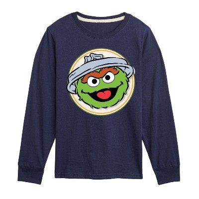 Boys' Sesame Street Big Bird Cookie Monster Elmo Oscar Long Sleeve Graphic T-Shirt - Navy - Large