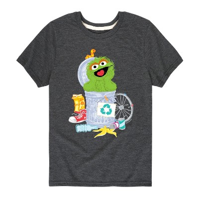 Boys' Sesame Street Oscar Gemini Energy Short Sleeve Graphic T-Shirt - Heather Charcoal - Medium