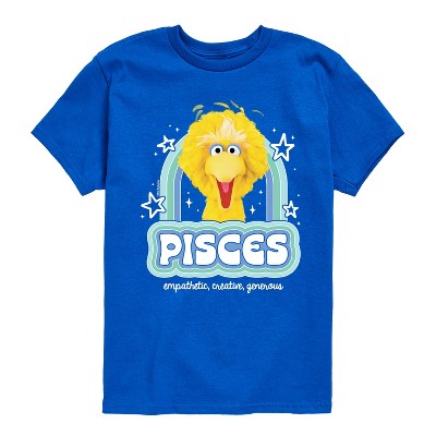 Sesame Street - Pisces Tamir - Toddler and Youth Short Sleeve Graphic T-Shirt - Show off your love for a childhood classic with officially licensed Sesame Street graphic apparel! Featuring bold, colorful designs of your favorite characters like Elmo, Big Bird, Cookie Monster, and more, this collection brings playful nostalgia and iconic style to everyday wear. Perfect for fans of all ages, each piece combines comfort with a fun, retro vibe straight from the world of Sesame Street.