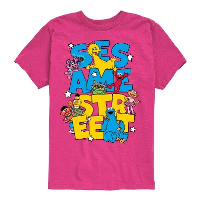Sesame Street - SS Group - Youth Short Sleeve Graphic T-Shirt - Show off your love for a childhood classic with officially licensed Sesame Street graphic apparel! Featuring bold, colorful designs of your favorite characters like Elmo, Big Bird, Cookie Monster, and more, this collection brings playful nostalgia and iconic style to everyday wear. Perfect for fans of all ages, each piece combines comfort with a fun, retro vibe straight from the world of Sesame Street.