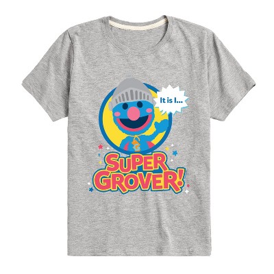Boys' Sesame Street Super Grover Cute Short Sleeve Graphic T-Shirt - Athletic Heather - Large