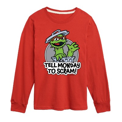 Sesame Street - Tell Monday To Scram - Toddler and Youth Short Sleeve Graphic T-Shirt - Show off your love for a childhood classic with officially licensed Sesame Street graphic apparel! Featuring bold, colorful designs of your favorite characters like Elmo, Big Bird, Cookie Monster, and more, this collection brings playful nostalgia and iconic style to everyday wear. Perfect for fans of all ages, each piece combines comfort with a fun, retro vibe straight from the world of Sesame Street.