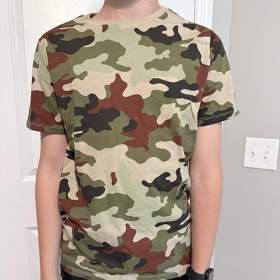 Whether they're playing in the neighborhood or spending time at home, your child is sure to love the cool style this Short-Sleeve Camouflage Printed T-Shirt from Cat & Jack™ brings to their day. Made from cotton-recycled polyester blend jersey fabric, this short-sleeve T-shirt brings cool comfort to their day, and the below-hip length allows them to wear it tucked in or untucked. This crewneck tee features a camouflage print, making it a fun pairing with shorts, joggers or chinos of their choice.