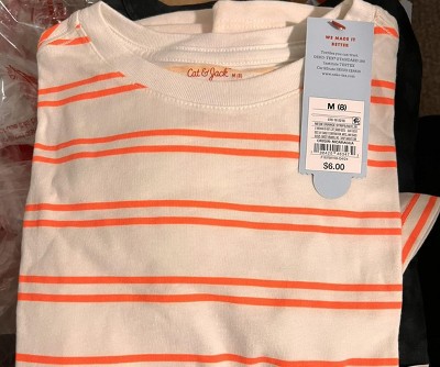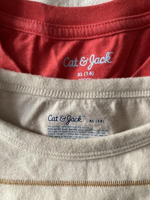 Elevate your child’s wardrobe with this Short-Sleeve Striped T-Shirt from Cat & Jack™. This pullover T-shirt is made from a midweight cotton-recycled polyester blend jersey fabric for comfortable, everyday wear. Featuring a classic striped design, casual fit, below-hip length and short sleeves, it’s a must-have for versatile styling.