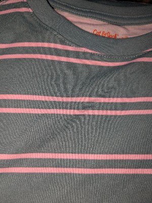 Stripes are pink on the teal shirt... They look white in the listing picture.