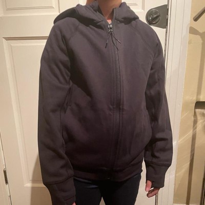 • Must-have features: solid color, hood, full-length zipper with zipper garage, raglan long sleeves with thumbholes, 2 side pockets, regular fit, at-waist length