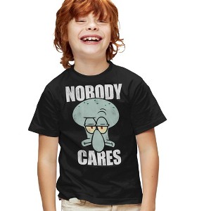 Boys' Spongebob Nobody Cares Meme T-Shirt Black Medium