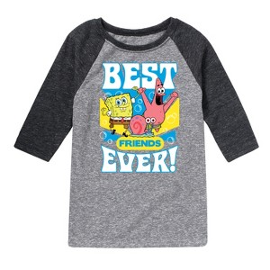 SpongeBob SquarePants - Best Friends Ever - Toddler & Youth Raglan Graphic T-Shirt - Dive into the fun of Bikini Bottom with SpongeBob SquarePants graphic apparel! Featuring colorful designs of SpongeBob, Patrick, Squidward, Sandy, and more, this collection brings the show's quirky humor and unforgettable moments to life. Perfect for fans of all ages, these pieces add a splash of personality to any wardrobe.