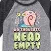 SpongeBob SquarePants - Head Empty Gary - Toddler & Youth Raglan Graphic T-Shirt - Dive into the fun of Bikini Bottom with SpongeBob SquarePants graphic apparel! Featuring colorful designs of SpongeBob, Patrick, Squidward, Sandy, and more, this collection brings the show's quirky humor and unforgettable moments to life. Perfect for fans of all ages, these pieces add a splash of personality to any wardrobe.