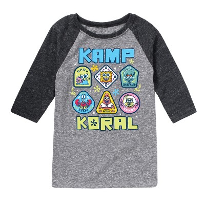 Kamp Koral - Kamp Koral Patches - Toddler & Youth Short Sleeve Graphic T-Shirt - Dive into the fun of Bikini Bottom with SpongeBob SquarePants graphic apparel! Featuring colorful designs of SpongeBob, Patrick, Squidward, Sandy, and more, this collection brings the show's quirky humor and unforgettable moments to life. Perfect for fans of all ages, these pieces add a splash of personality to any wardrobe.