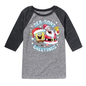 SpongeBob SquarePants - Seasons Greetings - Toddler And Youth Raglan Graphic T-Shirt - Dive into the fun of Bikini Bottom with SpongeBob SquarePants graphic apparel! Featuring colorful designs of SpongeBob, Patrick, Squidward, Sandy, and more, this collection brings the show's quirky humor and unforgettable moments to life. Perfect for fans of all ages, these pieces add a splash of personality to any wardrobe.