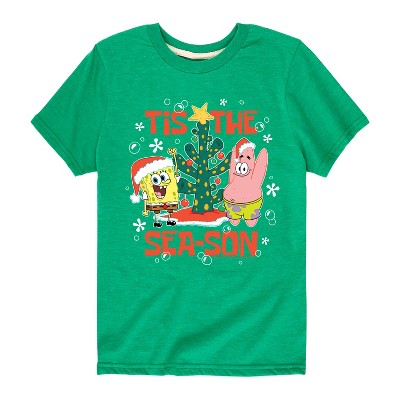 SpongeBob SquarePants - Tis The Season - Toddler And Youth Short Sleeve Graphic T-Shirt - Dive into the fun of Bikini Bottom with SpongeBob SquarePants graphic apparel! Featuring colorful designs of SpongeBob, Patrick, Squidward, Sandy, and more, this collection brings the show's quirky humor and unforgettable moments to life. Perfect for fans of all ages, these pieces add a splash of personality to any wardrobe.