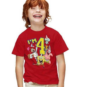 Boys' Spongebob Squarepants Today I'M 4 Sandy Patrick Squidward T Shirt Red