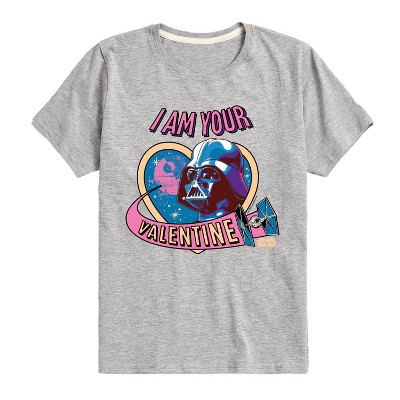 Star Wars - I Am Your Valentine Darth Vader -Toddler And Youth Short Sleeve Graphic T-Shirt - Embark on an epic adventure with our officially licensed Star Wars graphic apparel collection! Celebrate the legendary saga with bold, iconic designs featuring your favorite characters, ships, and moments from a galaxy far, far away. Whether it's the fearless Luke Skywalker, the powerful Darth Vader, the wise Yoda, or the unforgettable Millennium Falcon, each piece captures the magic and excitement of the Star Wars universe. From graphic tees and hoodies to sweatshirts, this collection combines comfort with striking artwork that showcases the timeless appeal of the Star Wars story.