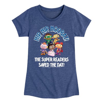 Super Why - Hip Hip Hooray - Toddler And Youth Short Sleeve Tee - Unleash the power of reading with this vibrant Super Why graphic apparel, perfect for young heroes ready to jump into storybook adventures and solve problems with the magic of words.