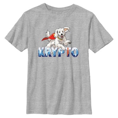 • Show off your favorite superhero with this boys' t-shirt that is perfect for every occasion! Featuring the lovable Krypto flying high over the Metropolis skyline, with the iconic Superman emblem glowing behind him and his name printed in bold red lettering below.