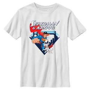 • Show off your favorite superhero with this boys' t-shirt that is perfect for every occasion! Featuring adorable comic book versions of Superman and his loyal sidekick Krypto getting ready to protect Metropolis.