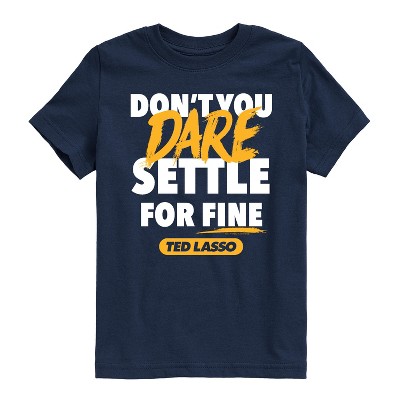 Ted Lasso - Don't You Dare Settle - Youth Boys Long Sleeve Graphic T-Shirt - Celebrate the essence of Warner Bros.'s Ted Lasso with officially licensed apparel featuring unique designs crafted exclusively by Hybrid Apparel. Each piece brings beloved characters, iconic imagery, and memorable moments to life, offering Ted Lasso fans a one-of-a-kind way to showcase their passion.