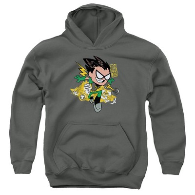 Boys' Teen Titans Go Robin Hooded Sweatshirt Charcoal Small
