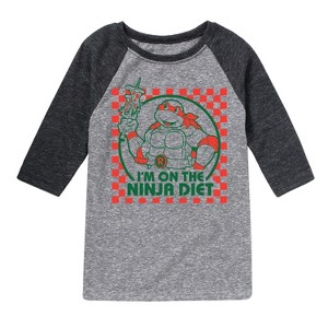 Teenage Mutant Ninja Turtles - Ninja Diet - Toddler And Youth Raglan Graphic T-Shirt - Unleash your inner hero with Teenage Mutant Ninja Turtles graphic apparel, featuring bold and colorful designs of the iconic heroes in a half shell—Leonardo, Donatello, Raphael, and Michelangelo. Perfect for fans of all ages, this collection celebrates the action-packed adventures, brotherhood, and fun-loving spirit of these legendary sewer-dwelling ninjas.