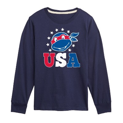 Boys' Teenage Mutant Ninja Turtles Raphael Breaking Through Shirt Long Sleeve Graphic T-Shirt - Navy - Medium