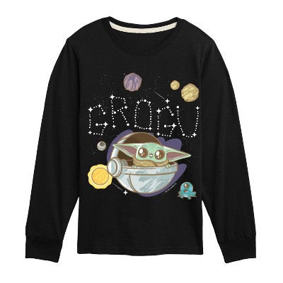 The Mandalorian - Enjoy The Little Things - Youth Long Sleeve Graphic T-Shirt - Embark on a legendary adventure with our officially licensed The Mandalorian graphic apparel collection! Inspired by the hit Star Wars series, this collection features bold designs showcasing the iconic Mandalorian bounty hunter, Din Djarin, his mysterious companion Baby Yoda (Grogu), and the action-packed moments from their journey through the galaxy. From the Mandalorian’s signature armor and the unmistakable helmet to the touching bond between Mando and Grogu, each piece captures the spirit of this thrilling series. Whether it's a graphic tee, hoodie, or sweatshirt, this collection combines comfort with the rugged, adventurous energy of The Mandalorian. Join the quest, protect the Child, and represent the way of the Mandalore in style!