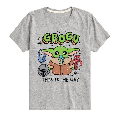 Boys' The Mandalorian Grogu Letterman Short Sleeve Graphic T-Shirt - Athletic Heather - X-Large