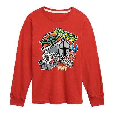 Boys' The Mandalorian Grogu Stickers Short Sleeve Graphic T-Shirt - Heather Red - Small
