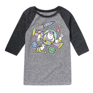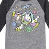 Disney - Buzz Space Collage - Toddler & Youth Raglan Graphic T-Shirt - Bring home new favorites like Forky along with the classics in Toy Story 4 graphic apparel—perfect for fans of friendship, adventure, and playtime memories.