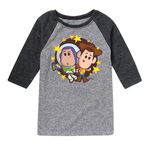 Disney - Buzz And Woody - Toddler & Youth Raglan Graphic T-Shirt - Round up the gang with Toy Story graphic apparel featuring Woody, Buzz Lightyear, Jessie, Rex, and the whole crew in colorful, heartwarming designs.