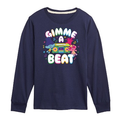 Boys' Trolls Dance Vibes Poppy Branch Long Sleeve Graphic T-Shirt - Navy - Small